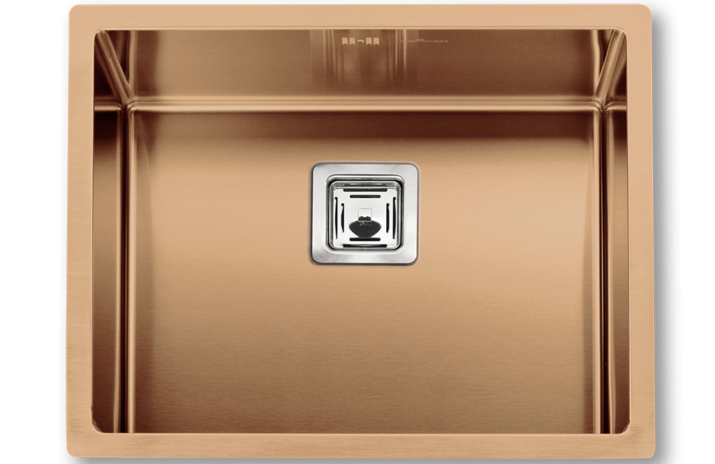 Single Bowl, Inset / Undermount Overall Size 540 x 440mm Main Bowl 500 x 400 x 200mm Min Base Unit 600mm Material Copper, Anthracite, S/Steel Waste Kit Included Square waste doesn’t fit Insinkerators