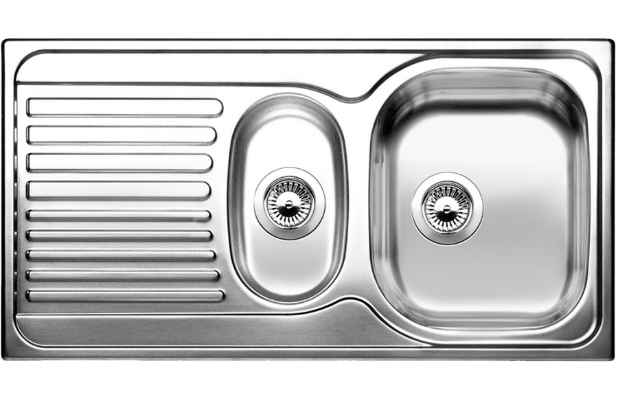 1.5 Bowl, Inset, Reversible Overall Size 950 x 500mm Main Bowl 420 x 330 x 170mm Second Bowl 160 x 310 x 130mm Min Base Unit 600mm Material S/Steel Clips & Blank Cap Included